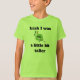 The t-shirt feels and looks great quality, a good thick cotton. It will be a little big for my son, but that means he will be able to wear it and not out grow it too soon. The print was as described on the order when personalised. True size, shape and colour T-shirt- thanks.