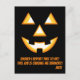 The Funny Jack-O'-Lantern Burnout Postcard has an orange, yellow, and white illustration of a Jack-O'-Lantern, and orange text on the black background. The text reads "Should I report this to HR? This job is causing me burnout!". HR stands for human resources. The cute and scary, carved out, illuminated face of a pumpkin is sure to transport you right into the spirit of Halloween.