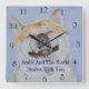 This happy slogan on this customizable clock "Smile And The World Smiles With you"" says it all about this funny smiling akita picture because a Japanese akita’s smile spreads happiness to everyone. This cute Japanese akita is my sweet girl named Asia, one day I saw her laying on her back with this wonderful happy akita smile on her face and I photographed her, then from the photograph and painted her portrait in water-color. The fun phrase is printed just below the happy akita dog face. This is a customizable clock, you can personalize it with your own text For everyone who loves this funny dog picture but aren’t acquainted with the Japanese akita breed here’s an "in brief" description of this unique breed of dog-: They’re large dogs, big gentle giants who require lots of consistent training and anyone who wants to be "owned" by an akita needs to study the breed thoroughly. The best place to go first is an akita rescue website where you’ll find lots of information on these amazing dogs and hopefully you'll also be able to givr a Japanese akita s forever home and find your friend and companion for life, my precious akita girl comes from Akita Rescue and Welfare U.K. and I think her funny akita painting looks great on this original clock. So, if you want to see an akita smile take a trip to akita rescue . If you're interested in commissioning a pet portrait for yourself or as a special gift for someone, please don't hesitate to email me for further details. I look forward to "chatting" to you:)