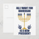 All I Want for Hanukkah is a new president postcard for a Jewish friend. Let's get a new POTUS for Chanukah. A funny political holiday card with a blue and gold menorah.