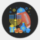 Funny Jewish Football Ball Menorah Happy Hanukkah Classic Round Sticker