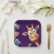 Make your child's birthday party truly roar-some with these delightful zoo animal paper plates! This charming design showcases a group of friendly cartoon animals, including a large, goofy giraffe as the star, accompanied by a striped tiger, an endearing elephant, a jovial hippo, and a shy turtle. Set against a rich, vibrant purple backdrop, these plates are sure to be a hit with young partygoers. They are perfect for serving birthday cake, finger foods, and other party delights, adding a touch of playful magic to any celebration. These durable paper plates offer a fun and convenient way to celebrate your child's special day.