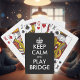 Funny Keep calm and play bridge playing cards. Make your own funny keep calm and carry on parody design. Vintage keepcalmandcarryon typography template with crown. Cute keepcalm card game examples: Keep calm and party on. Keep calm and play poker. Keep calm and play bridge. Create your own spoof with this famous slogan. Customisable background colour. Cute gift idea for men women and kids.