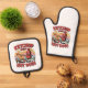 Funny Ketchup and Hot Dog Cartoon Retro Food Art Oven Mitt & Pot Holder Set