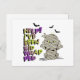 A wrapped mummy baby with green eyes and classic gauze bandages decorates this fun Halloween postcard along with hilarious 'Help! I've been kidwrapped' typography. Add your name and personal message on the back using the provided template. Also available in an orange/purple colour palette. Search ID683 and ID685 to see coordinating party supplies and accessories with more mummy designs.