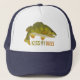 Funny fishing hat with an original drawing of a bass fish and the words "kiss my bass." This is a cool hat for any fisherman.