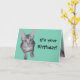 A cat lovers birthday card with a cartoon of a kitten saying " It's your birthday!" with the inside saying " Have a purr-fect day! " A headshot of the kitty is also featured in the inside corner.