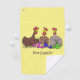 The golf towel exceeded my expectations! My husband actually approved of it! He liked the picture quality, thickness and overall usefulness of the golf towel I ordered to commemorate his lowest ever golf score. He liked it so well that I ordered 8 more towels with photos of his home golf course. Each one of the eight has the name of one of his golf group members. I will give them as party favors at my husband's 70th birthday party later this year. The different names were easy to add because the Zazzle template is so very easy to use. The colors were bright and authentic in all 9 of the towels that I made. The one of the 9 that I ordered has come out of the wash and line dry looking great.