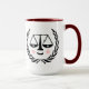 Creative lawyer mug featuring cartoon scales of justice. To personalise edit text to add name.