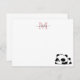 Funny Laying Panda Script Pink Modern Monogram Note Card