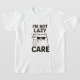 Add some sass to your style with this bold and funny cat design! Featuring a cool cat rocking sunglasses and a smug attitude, this artwork says it all: "I’m Not Lazy, I Just Don’t Care." Perfect for anyone who embraces chill vibes, sarcasm, and a little bit of rebellion.