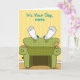 Funny Lazy Happy Father's Day Greeting Card, A dad with his recliner pulled way back and a picture of his feet with the saying It's Your Day POP's, or add a different unique name! on the inside the saying Pull your chair WAY Back and relax, have a happy father's day! Customise and personalise this greeting card to fit your own unique needs add or change the text to add your special message