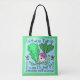 The colours include bright shades of green, blue, purple and brown. This is a humourous tote bag for any school teacher, gardening fan or lover of silly wordplay and food jokes.