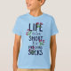 The t-shirt feels and looks great quality, a good thick cotton. It will be a little big for my son, but that means he will be able to wear it and not out grow it too soon. The print was as described on the order when personalised. True size, shape and colour T-shirt- thanks.