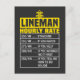 Funny Lineman Hourly Rate design. great gift idea for every lineman and electrician on Christmas or Birthday.