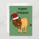 Funny Lion in Santa Hat Christmas Cartoon Holiday Postcard