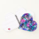 A funny little bird, lovely floral elements, and a little heart on a pink, purple and turquoise background.