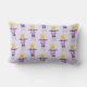 A lumbar pillow with a charming funny pattern. Designed with a whimsical llama blowing a big pink bubble while chewing gum. Wearing a gold crown and a black bow tie. Light purple background.