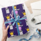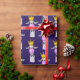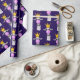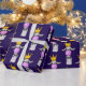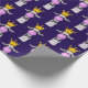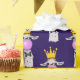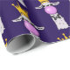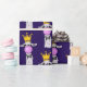 Wrapping paper with a charming yet funny pattern. Designed with a whimsical llama blowing a big pink bubble while chewing gum. Wearing a gold crown and a black bow tie. Dark purple background.