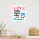 A funny poster with the caption "Love cannot be measured, unless it's by Carats." with a icon of a sparkling diamond ring. The humourous quote is a stereotype dig on ladies love for diamonds and using carats as a measurement of love. Yet if you love someone so much, you will want to propose to her with an engagement ring and get married. Great for girls with a sense of humour! Simple colour scheme of pink, blue and black to bring out the message. And if you read from afar, it sums up to Love Carats!