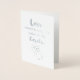 A funny quote that reads "Love cannot be measured, unless it's by carats." with a doodle illustration of a sparkling large diamond ring. Move the card to watch the shimmering of the silver foil!