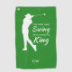 Perfect Gift for the King of the Green! Show your appreciation for your favourite golfer with this fun and stylish golf towel. Featuring a modern design with a green background and a golfer in action, the towel displays the playful text "I’ve seen your Swing You’re really my King" in a mix of elegant serif and script fonts. Whether it's a birthday, holiday, or just because, this towel is the perfect way to bring a smile to your partner’s face on the course. It’s practical, funny, and sure to make any golf game more enjoyable. Pair it with our matching design for female golfers to create the ultimate gift set!