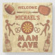Create your own humourous, custom "man cave" stone coaster using this easy template. Made to look like the wall of a cave, the coaster has primitive drawings of men throwing darts, a dart board, a TV, a football, two baseball bats, two baseballs, two pretzels and a couple of retro beer bottles. The coaster can be easily personalised with your name and the year your home bar or "man cave" hideout was established. "Welcome" and "to" are also changeable if you'd like - but the "Man Cave" words are part of the design. The whole coaster is in shades of brown, yellow and a little red.