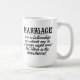 This 'Funny Marriage Quote' coffee mug reads "Marriage is a relationship in which one is always right and the other is the husband."