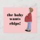 This funny maternity design says The Baby Wants Chips.  Every pregnant mum has cravings; just blame it on the baby!  Great gift for a friend or family member who is expecting.