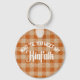 Funny rustic country keychain features white "Wait 'til you meet my kinfolk" text and a vintage chequered background
