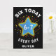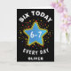 Funny Meme Six Today 6-7 Every Day Birthday Kid's Card. Celebrate their big 6th birthday with a touch of humor with this 'SIX TODAY 6-7 EVERY DAY' card. A gradient blue star, and firework bursts make this card playful and fun. Perfect for boys and girls. This fun design makes a great birthday personalized card. Add your name.