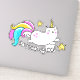 Funny cute illustrated cartoon meowlogical unicorn kitty rainbow glitter tail art sticker to scrapbook, laptop case, DIY projects.