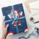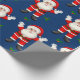 Funny Merry Christmas Leaf Custom Santa Face Blue Wrapping Paper