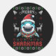 Funny Merry Sharkmas Ugly Christmas Shark Wearing Classic Round Sticker