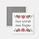 Funny Girly Middle Finger Quote Refrigerator Magnet. Two Words One Finger. Text can be customized if desired. It's a polite yet sassy subversive way to tell someone to eff off and go away. Cute & pretty folk art style floral garland with sarcastic morning motivational humor quote in center. Design was inspired by vintage embroidery, subversive cross stitch, and simple tattoo art style. Pretty hanging flowers and inappropriate sarcasm humor design make a funny gift for her - busy mom, wife, girlfriend, grandmother, bridesmaid, aunt - for Valentine's Day, birthday, anniversary, Christmas, Mother's Day, etc. Feminism humor / feminist quote design for strong confident empowered woman not afraid to express herself openly.