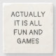 Funny Minimalist Typography Fun and Games Quote Stone Coaster