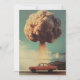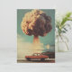 A card to tell someone you're missing them. The front shows a 1950s car and a bomb above it. The back of the card says: Life is so boring without you. This is a flat, two-sided card.
