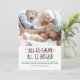Perfect funny holiday card with the saying All is Not Calm. All is Still Bright! This card has pretty hand lettering and script calligraphy typography. Add a photo to the front along with holiday message, family name and year. Everyone will love it! Black and white tree pattern with little gold stars on the back