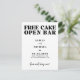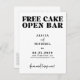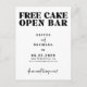 Minimalist bold typography black and white funny wedding save the date postcard with a trendy "free cake open bar do we need to say more" script.