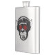 The product is a good size and came exactly as it was pictured. The lid is not attached to the flask, which could be dangerous on drunken nights... The print came out surprisingly well and looks very sharp. Would definitely recommend.