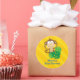 Personalised Baby shower sticker featuring a funny monkey in the jungle with a yellow stripe background. Cute and fun design for special for boys. Custom monogrammed gift. For no personalisation, delete sample text and leave blank.