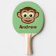Funny monkey ping pong paddle for table tennis. Add personalised name or quote. Cute sports gift idea for player and sports coach. Fun games for kids. Cute chimp face cartoon. Suitable for girls and boys. Green background colour can be changed.