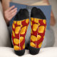 A pair of socks with an all over real-photo chicken nuggets print on a ketchup red background. Yum! To make them extra fancy, they have a customisable monogram near the top on the outside of the socks. Edit the initials to your first, middle, and last initials!