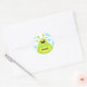 Cute and fun, personalised name stickers featuring a happy, green, striped monster or alien cartoon with customisable text on a yellow, whimsical oval with an orange dot border on his belly. Add your name or other text. The monster is happy and looks like he is cheering. Bright and colourful design for kids, great as property labels or bookplates for little boys and girls. Other coordinating products are available.