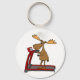 Funny Moose Exercising on Treadmill Cartoon Key Ring