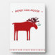 Merry Kiss Moose funny red and white Christmas holiday design featuring a whimsical moose or elk with a bunch of mistletoe tied to his antler, hoping for a cheeky kiss.