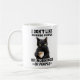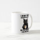 A grumpy black cat with a cup of coffee, and a funny saying: I don't like morning people, or mornings, or people.