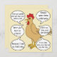 Funny Mother Hen Advice for Mother's Day or any other day. Great for mothers or grandmothers or any guardians who raised you and gave you such advice and thaught you things when you were growing up. Cute brown Chicken is a mother hen and advice are given in talk bubbles. All can be customised. The back text "To the best Mother Hen. I love you Mum." can also be changed or left as is.