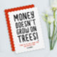 Mark Mother's Day with our chic yet amusing card, featuring the classic phrase 'Money Doesn't Grow on Trees!' in a bold, minimalist design. The striking red and black typography against a pristine white background adds a touch of humour to the simplicity. Personalise the message and signature for a heartfelt touch, making it the perfect choice for empowered mothers and grandmothers seeking a blend of wit and warmth.