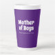Funny latte mug for Mother's Day or any day to honour special moms! Bright purple background with white text that reads "Mother of boys. There may be wine in here"